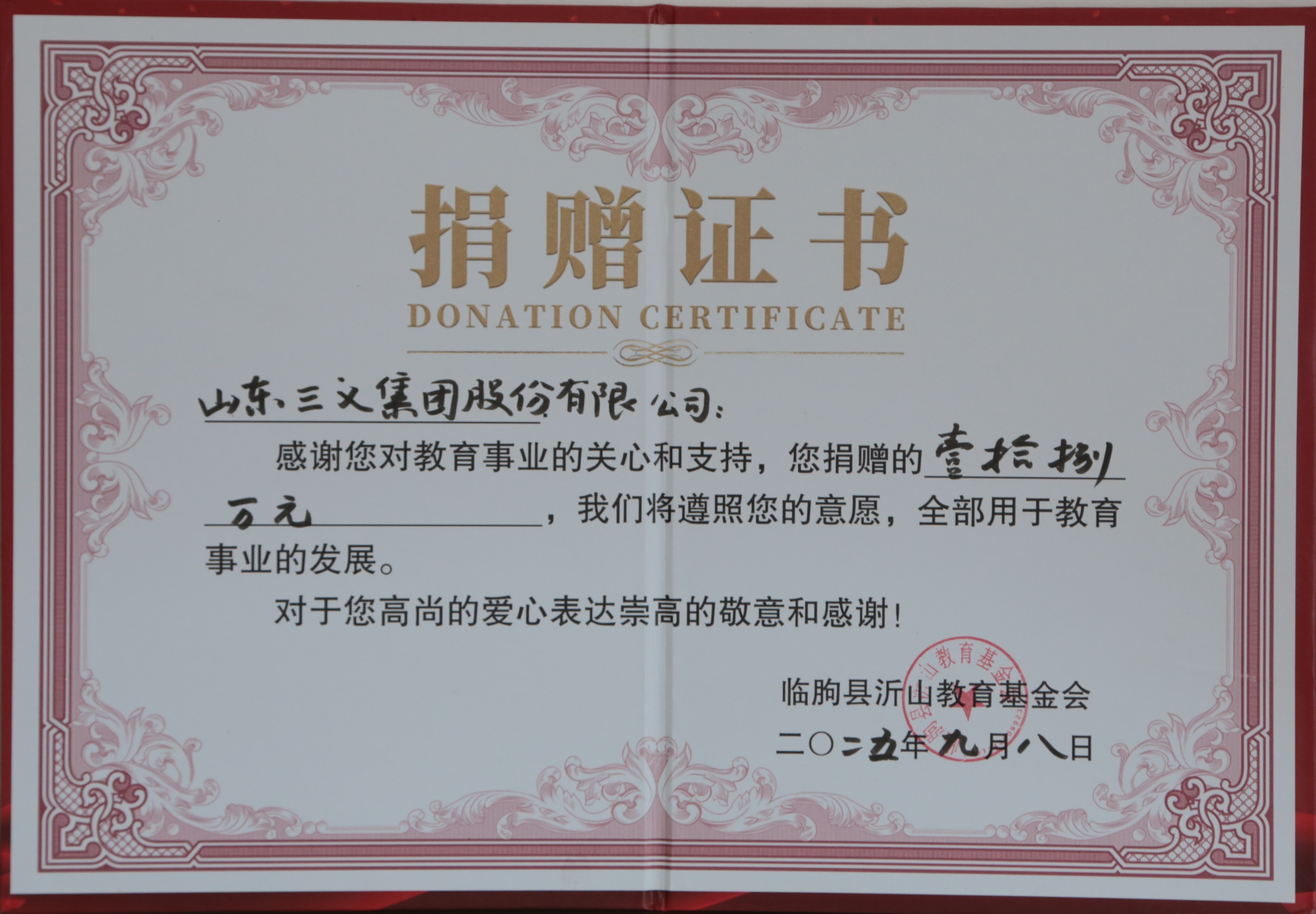 为支持全县教育事业发展,集团公司向临朐县沂山教育基